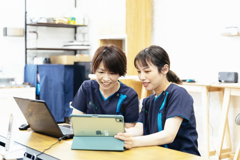 研修方法は、タブレットの動画視聴と直接の指導があります。入職者1名に対して1人バイザーが付き訪問看護の一連の業務をサポートします。